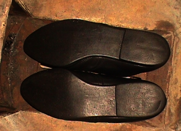Aber mein größter Favorit sind flache weiche Lederschuhe in Rot oder Schwarz, die ich nach dem erfolgreichen Entreißen aus den Klauen des Müllmonsters zu "Wandertagen" meist noch richtig endfertig "ablatsche". Meine breiten Füße geben ihnen wirklich "den Rest", es ist deutlich zu sehen!