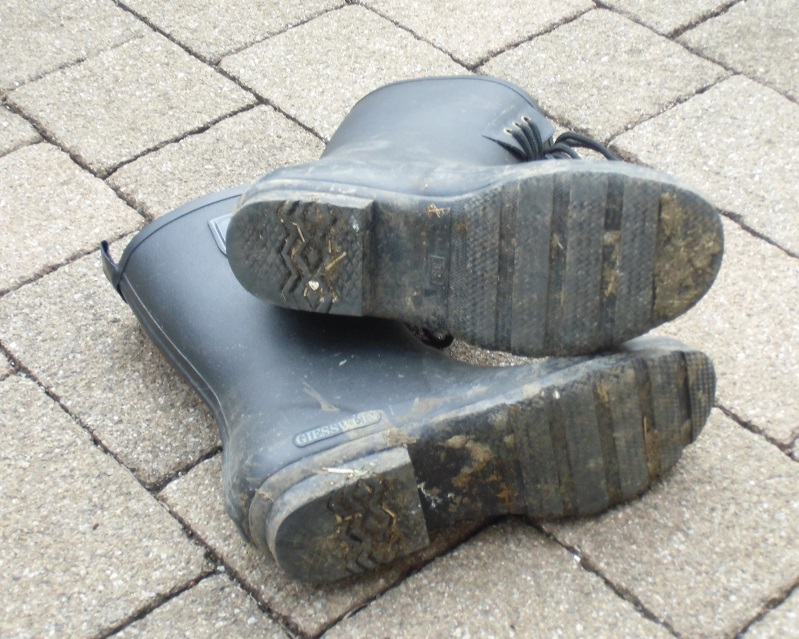 Ich habe euch da ein paar Bilder von den Giesswein Gummistiefeln meiner Frau. Sie trug die Stiefel während sie bei Bekannten, die im Urlaub waren, den Hasen und Hühnerstall gemistet und die Tiere versorgt hat. Ich finde es geil, wenn solche Schuhe nicht nur in der Stadt beim Shopping und schlecht Wetter, sondern auch mal so richtig in der Schei..... (Scheibenkleister) in Einsatz kommen. Ich habe die schönen Stiefelchen nach zwei Wochen Stalleinsatz dann wieder schön gereinigt.