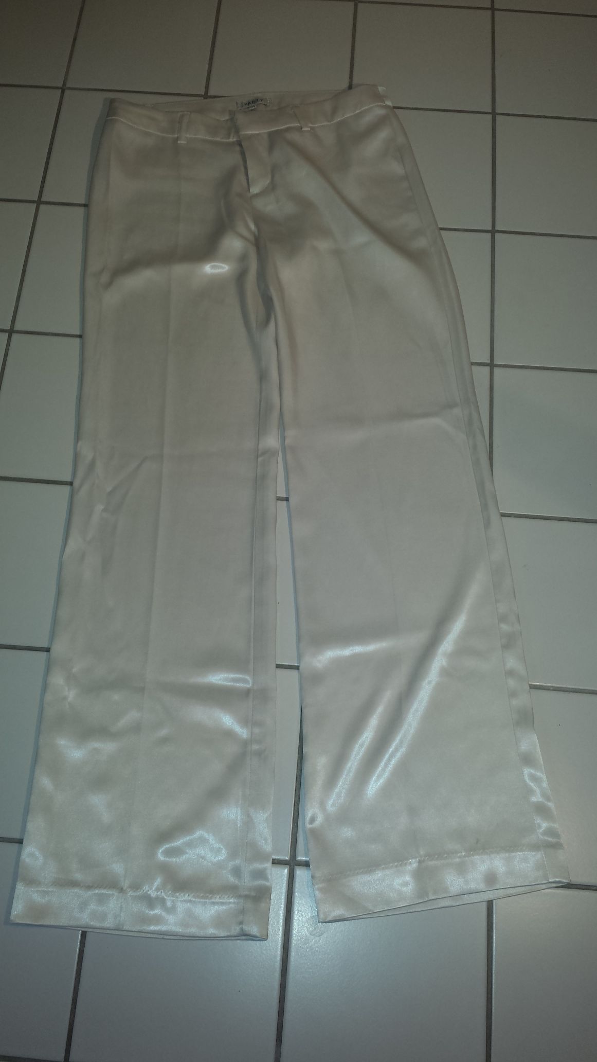 Hier zu sehen: Die weiße Satinhose vom Hosenanzug, richtig teuer, sehr geil weich und in einer super Qualität.