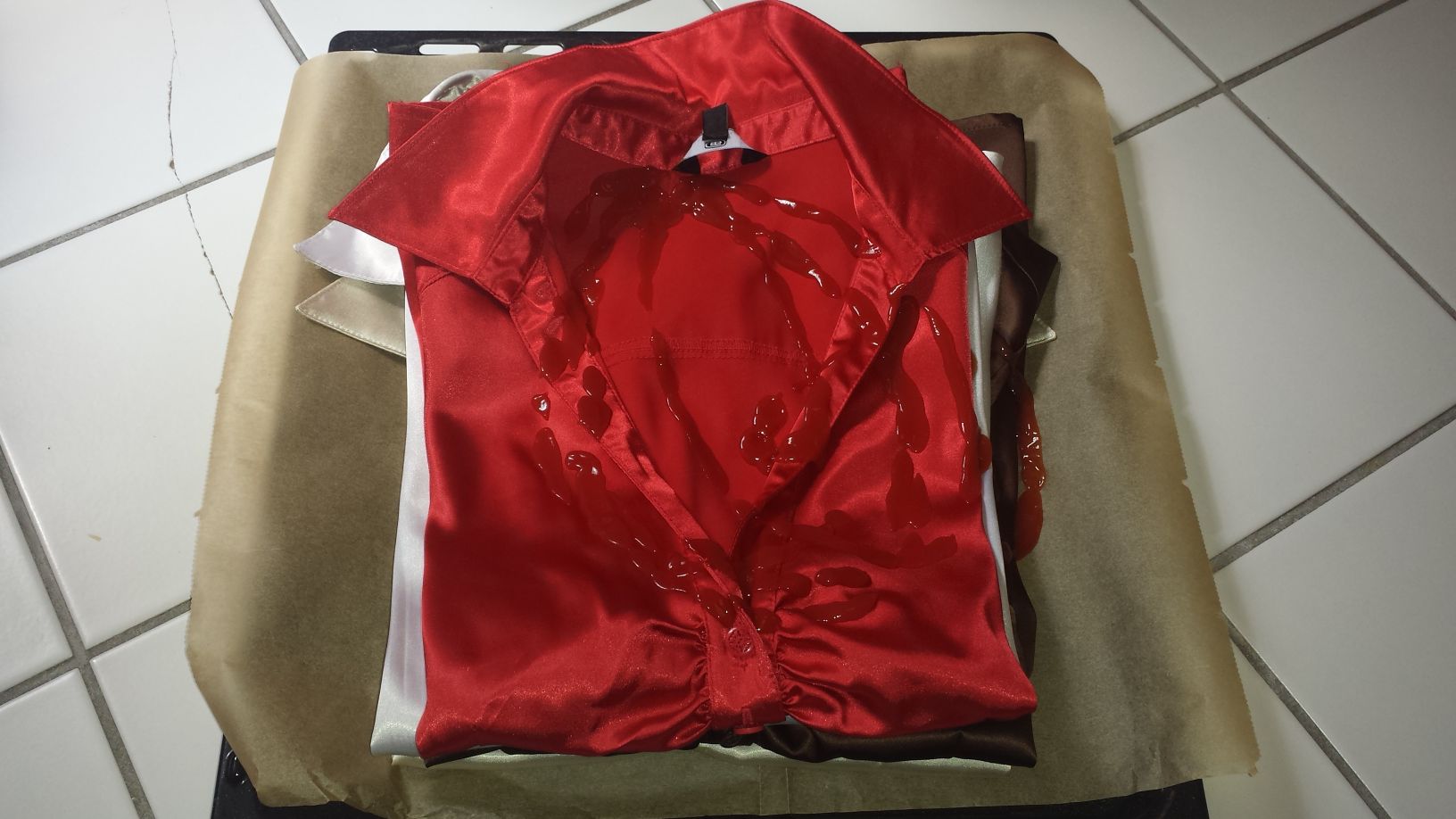 Habe mal einen Burger aus wunderschönen Satinblusen gebaut, dazwischen immer mit einer Schicht Ketchup, denn ich mag es gerne saftig.