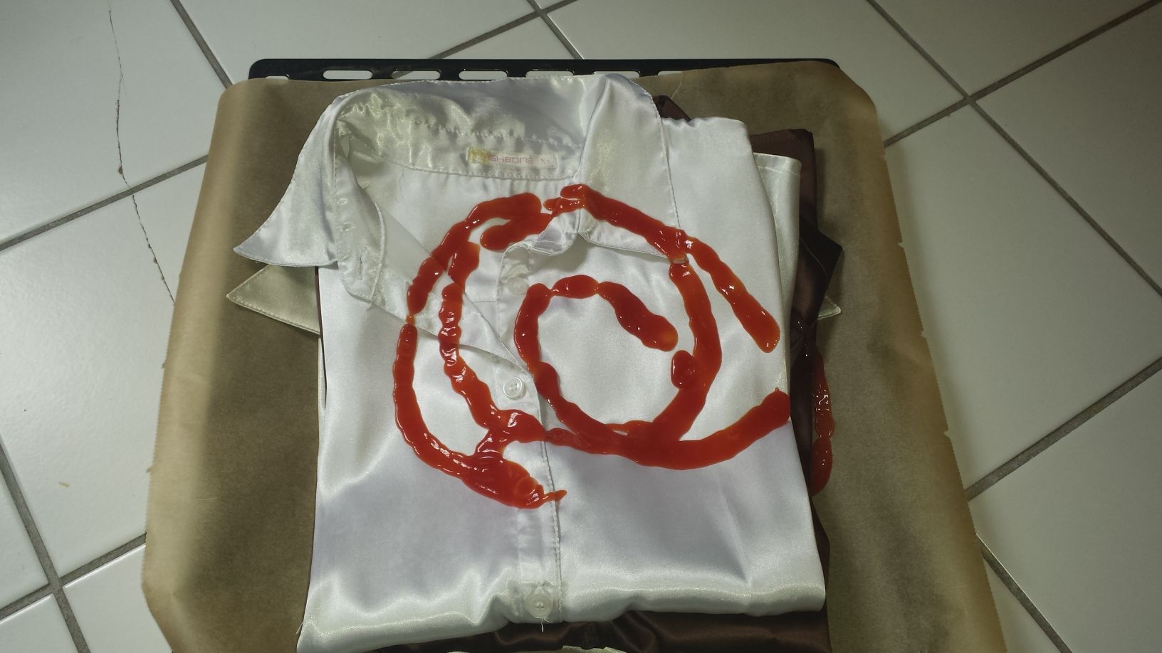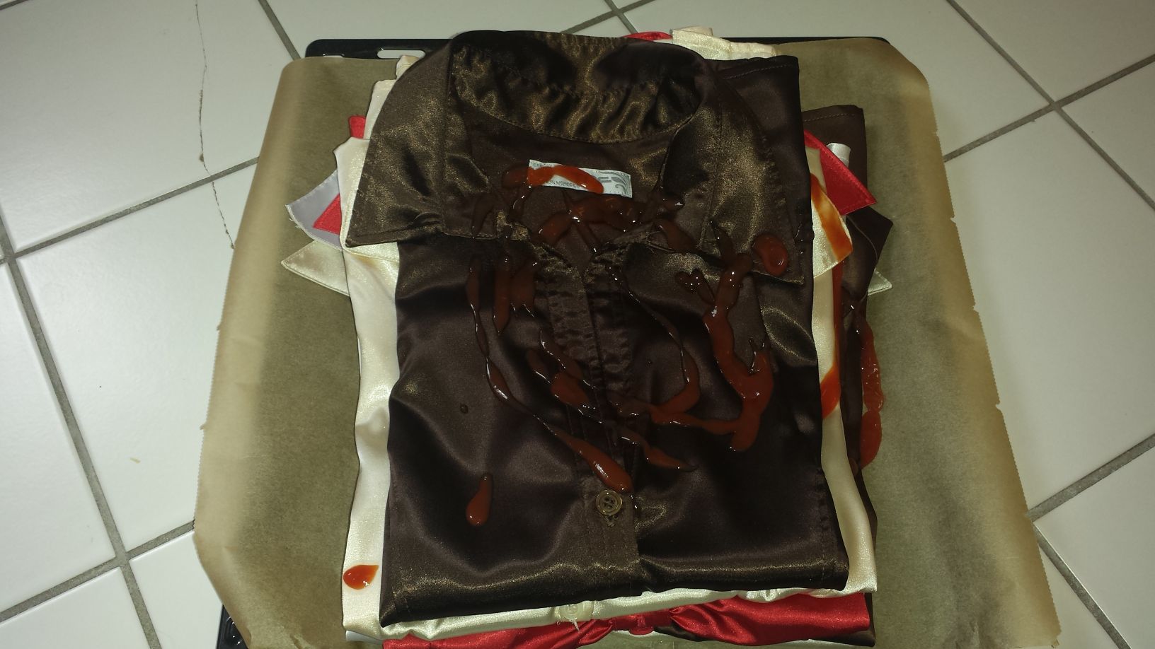 Habe mal einen Burger aus wunderschönen Satinblusen gebaut, dazwischen immer mit einer Schicht Ketchup, denn ich mag es gerne saftig.