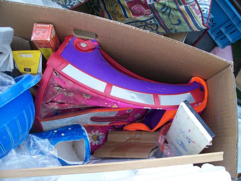 Kinder- und Girly-Schuhe, ausrangiert, ausgeschlachtet und reif für die Sperrmüllabfuhr.