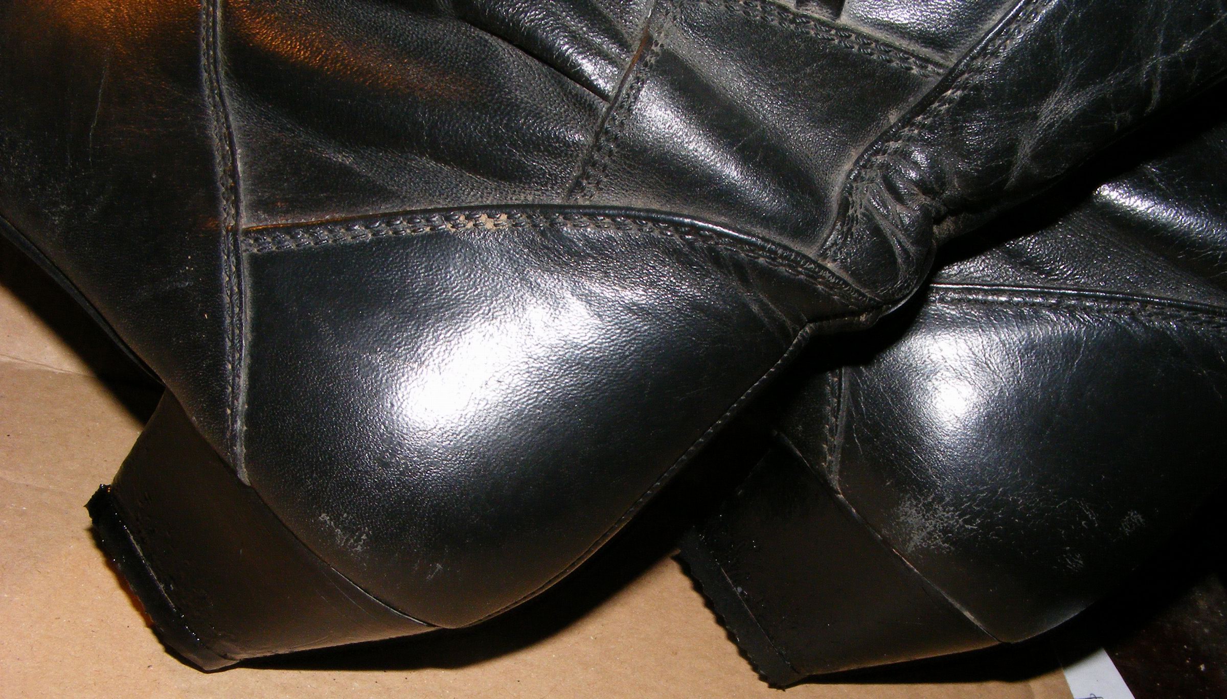 (In Anbetracht der rechtwinkligen Gehfalten und der Fußbreite müßte die Vorbesitzerin ebenfalls "Götterfüße" gehabt haben.)