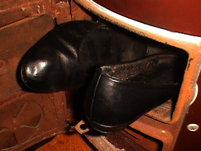 Meine wundervollen langjährigen Salamander-Hausschuhe (stammten ebenfalls von einer Müllkippe), durch die viele "Arbeit" vor dem Badeofen