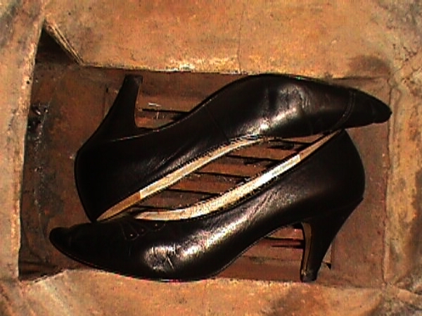 Deshalb habe ich mich entschlossen, dieses Paar aufzubewahren. Leider sind sie mir zu klein für schöne Vintage-Tragefotos (es wird sich doch hoffentlich noch mal ein passendes Füßchen finden), aber wenigstens kann ich euch somit den vor rund 25 Jahren üblichen Anblick ihres perfekten Endes präsentieren!