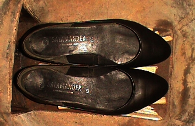 Diese meist schwarzen 1990er Reno-Pumps aus Lacksynthetik (etwa 18-20 Mark) gab es seinerzeit zu Millionen, absolutes "Pflichtprogramm" in der Schule und ein völlig selbstverständlicher Anblick auf der Straße. Wie viele Mädels haben damit ihre ersten "Gehversuche" gemacht ... :)