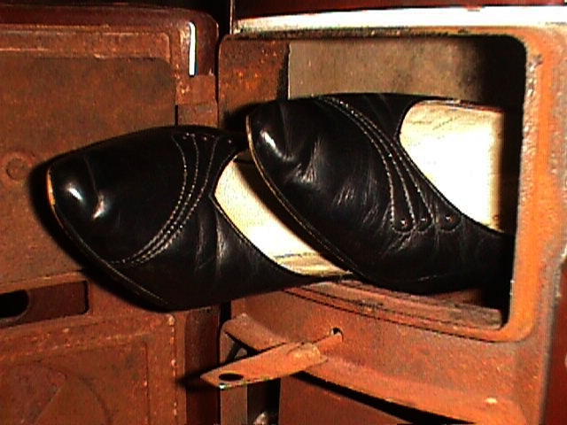 Meine wundervollen langjährigen Salamander-Hausschuhe (stammten ebenfalls von einer Müllkippe), durch die viele "Arbeit" vor dem Badeofen