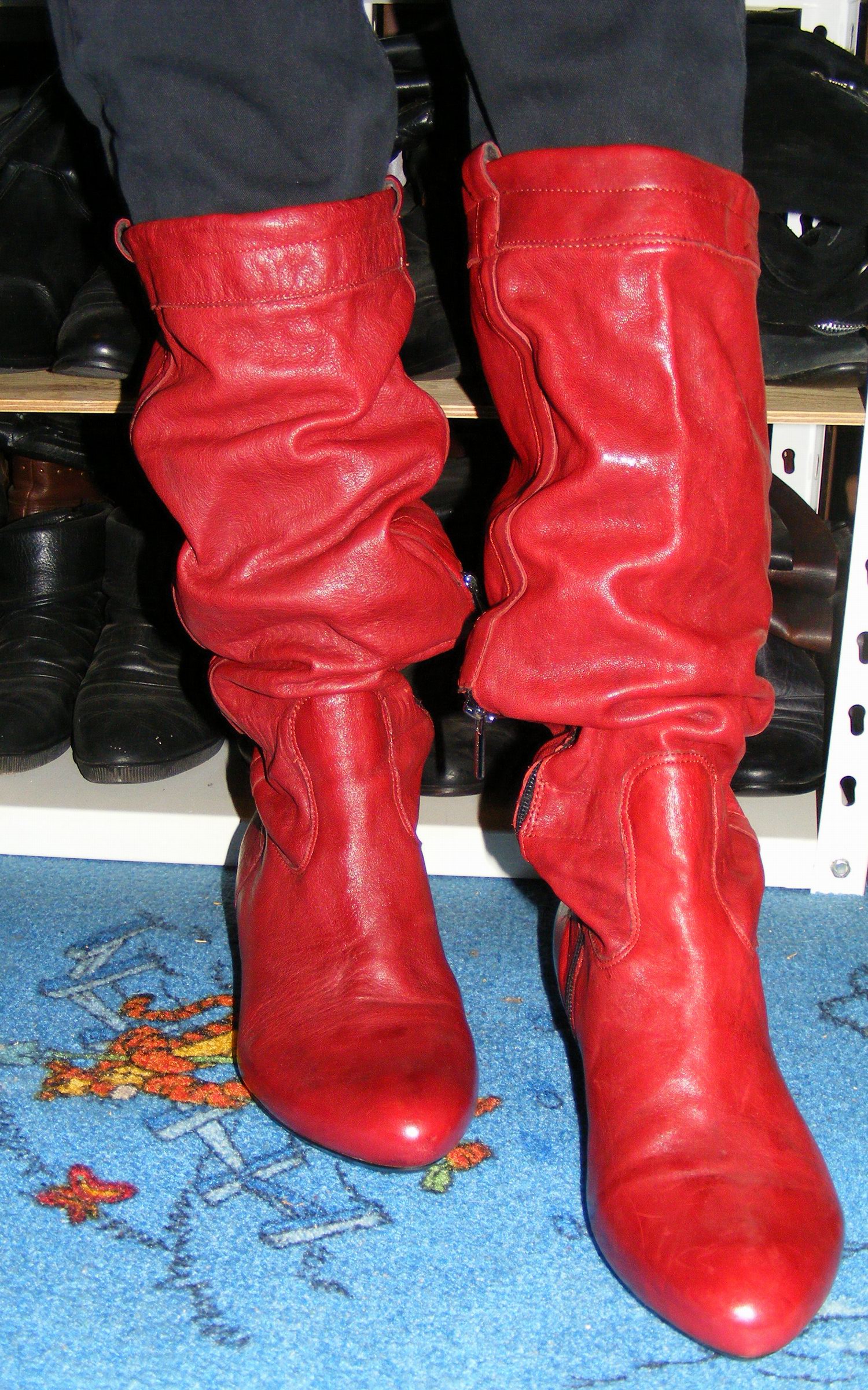 Aktuell habe ich mir diese Betty Barcley 7/8-Echtleder-Hose aus dem Sperrmüll "genehmigt", ich will sie demnächst mal zusammen mit meinen roten Stiefeln vor Live-Publikum testen ... :)