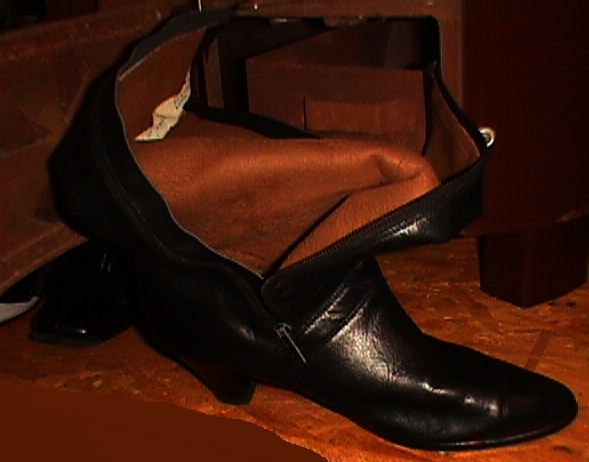 Ende der Neunziger lagen im Sperrmüll Unmengen (wie später niemals mehr) an meist knielangen, schwarzen Stiefeln, mit rund 8 cm-Absätzen und Reißverschlüssen und dazu baugleiche, ebenfalls meist schwarze Stiefeletten (manche mit Pelzkragen). Solche habe ich im Winter notfalls auch "auf der Straße" unter der Hose abgetragen, um meine noch nicht so zahlreichen "wahren Schätzchen" nicht Schnee/Matsch auszusetzen. Dafür hatte ich ein extra Fach im Schuhregal, in das diese Altstiefel regelrecht hineingetopft waren. Manchmal lagen sie auch schon im Bad im Kohleneimer.