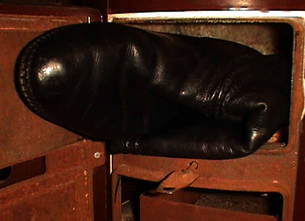 Und wahrlich, es wurde eben sofort erkannt und jede/r Besitzer/in eines Solchen wird bestätigen, daß Schuhe/Stiefel wirklich der perfekte Brennstoff dafür sind!