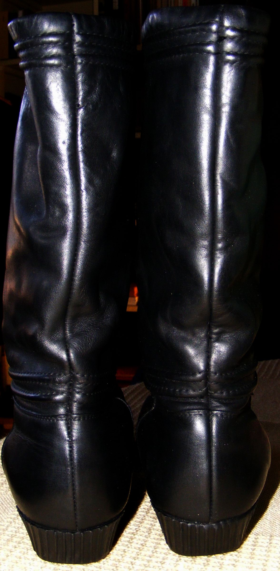 Ende der Neunziger lagen im Sperrmüll Unmengen (wie später niemals mehr) an meist knielangen, schwarzen Stiefeln, mit rund 8 cm-Absätzen und Reißverschlüssen und dazu baugleiche, ebenfalls meist schwarze Stiefeletten (manche mit Pelzkragen). Solche habe ich im Winter notfalls auch "auf der Straße" unter der Hose abgetragen, um meine noch nicht so zahlreichen "wahren Schätzchen" nicht Schnee/Matsch auszusetzen. Dafür hatte ich ein extra Fach im Schuhregal, in das diese Altstiefel regelrecht hineingetopft waren. Manchmal lagen sie auch schon im Bad im Kohleneimer.