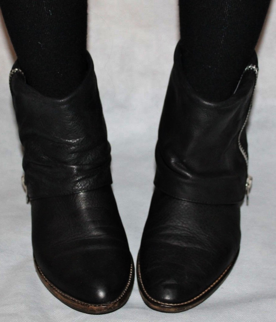 Zara Basic - Nieten-Bikerstiefel schwarz/silber Leder