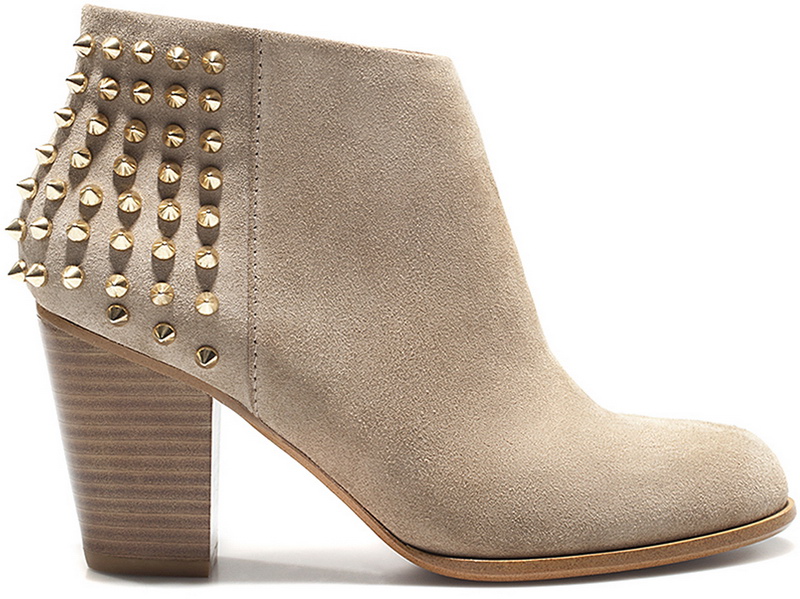 Zara - Nieten-Stiefeletten beige Velourleder