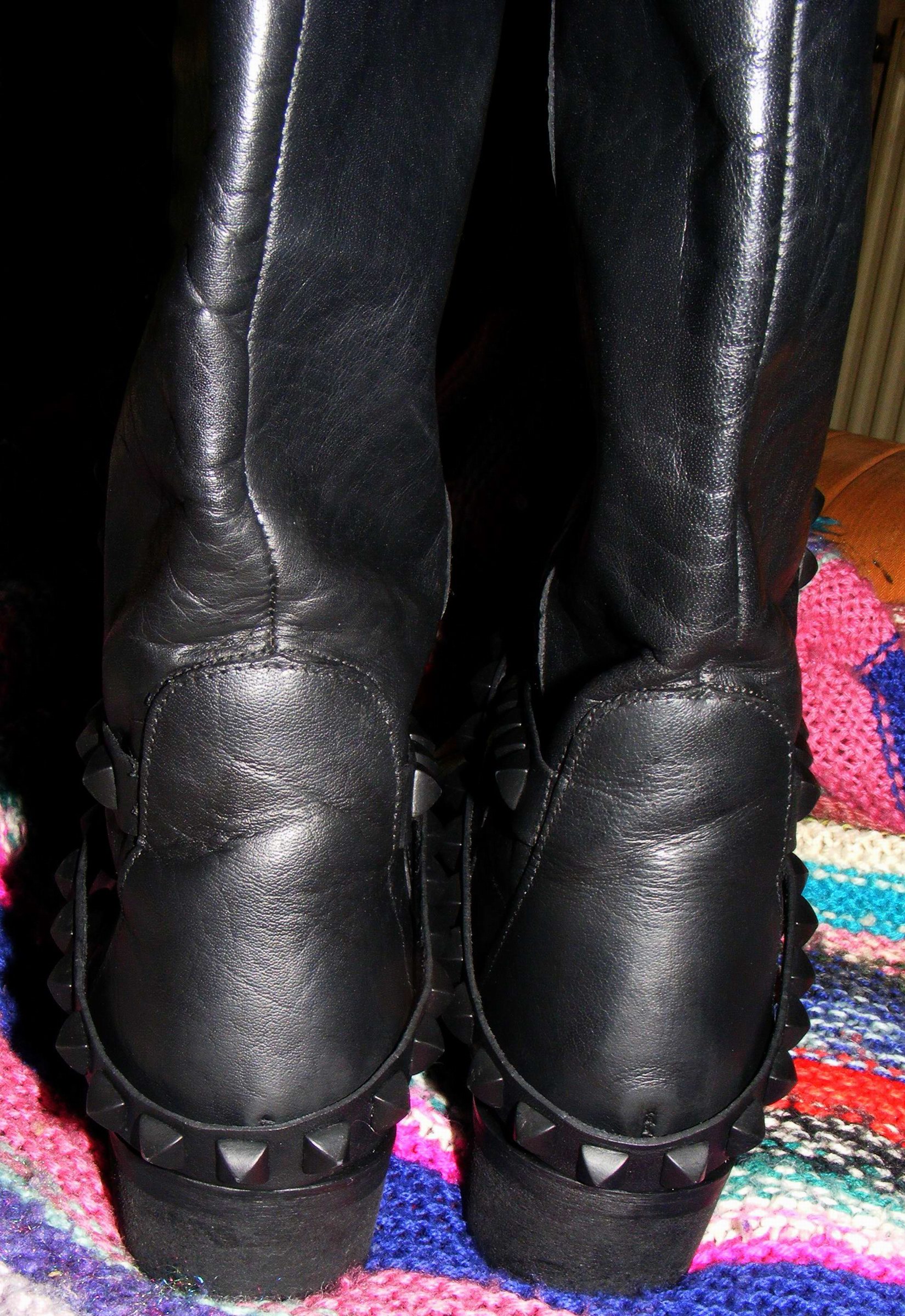 Zara Basic - Nieten-Bikerstiefel schwarz/silber Leder