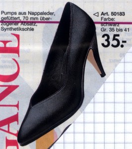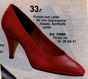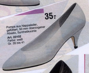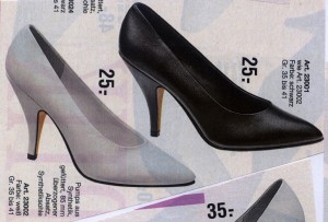 Seht mal, was Reno 1990-92 so Schönes im Katalog hatte! Obwohl ich in den späten 90ern Tausende Kaputte und/oder zu Kleine verbrannt hatte, habe ich davon noch viele in meiner Größe aufbewahrt (kennt ihr von den Tragefotos) und auch noch zahlreiche Paare in 35-39 (sogar Ungetragene!) aus Verbrennungsaufträgen, die ich aber nach Rücksprache mit den Vorbesitzerinnen "Verschonen" durfte. Es müßten insgesamt so an die 400 Paare Pumps und Lederballerinas sein! :)