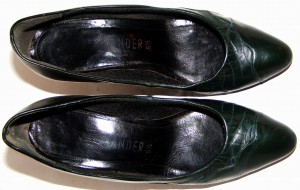 Ein Paar dunkelgrüne Salamander-Pumps von ca. 1987.