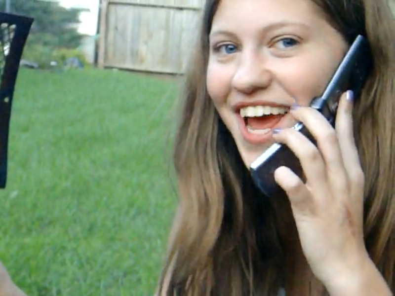 Währenddessen hat das Mädel ihre ungeliebten Krankenschwestern-Schuhe geholt und beide in den Grillofen geworfen, Einen davon dann an mehreren Stellen, erst am Obermaterial, dann an der Sohle, mit dem Feuerzeug in Brand gesetzt. Voller Begeisterung ruft sie ihre Freundinnen an und berichtet darüber, daß sie gerade erstmals selbst eigene Schuhe verbrennt, was das für einen "riesigen Spaß" macht und "Oh, mein Gott", wie wunderschön das aussieht!