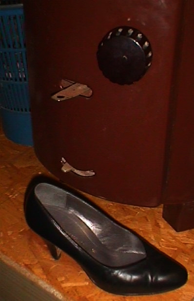 Das Geschäft verfügte über eine Zentralheizung mit "Forster-Kessel", der in einem Raum neben dem Büro stand. Dort haben wir dann auch die restlichen Kartons, Verpackungen, Holzregale usw. verfeuert. Am Übergabetag standen dann auch noch diese Pumps neben dem Ofen, der aber nicht noch einmal angeheizt wurde. Wir haben Alles "besenrein" gemacht, in der Mitte des Ladenlokales stand eine Mülltüte, in die die Schuhverkäuferin zuletzt auch noch diese Pumps hineinwarf.