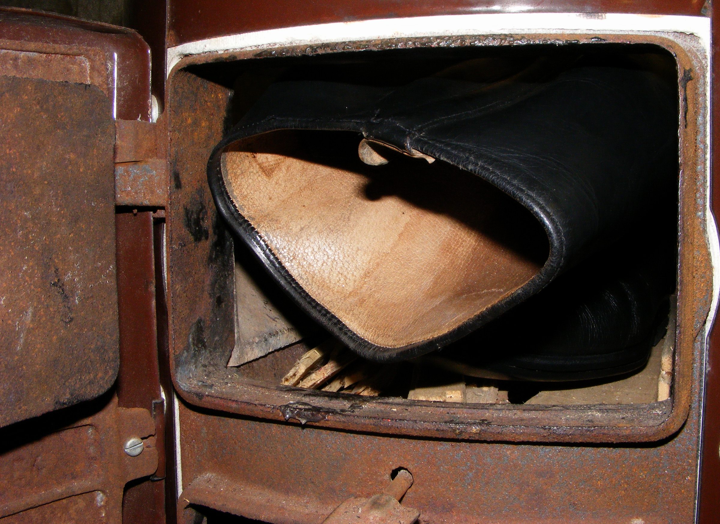 ² Zusammenfassung: Die von meiner BF im Sperrmüll gefundenen Reitstiefel sollten ja bekanntlich beim Essenkochen im Küchenherd Verwendung finden, doch sie bekam die steifen Stiefel nicht in das kleine Feuerloch. Zerlegen war keine Option. Hingegen, der Badeofen wäre mit ihnen problemlos "fertig" geworden; eine geeignete "Zuheizung" hätte sie perfekt Entflammt und in ein Häufchen grüne Asche verwandelt! :twisted: