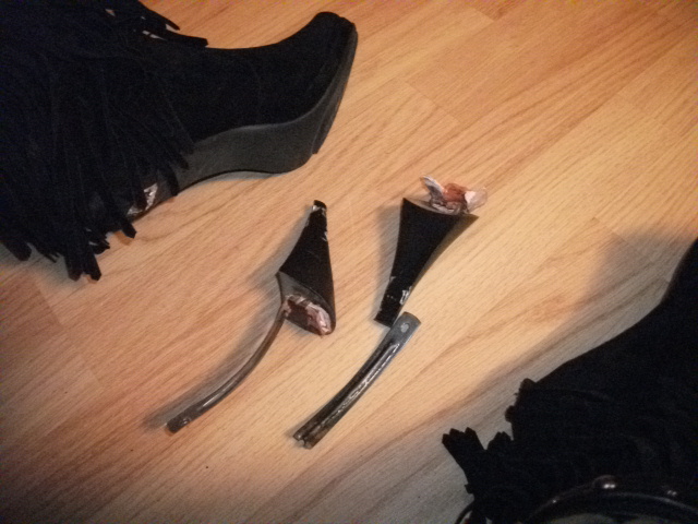 Die roten Stiefel sollten ganz langsam dem Ende zugeführt werden, den das zerschneiden geht einfach zu schnell.