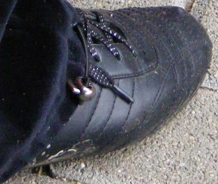 (Den lieben, ach so kritischen Burner1973 würde es Freuen: Es waren ein Paar wirklich schöne schwarze klassische Lederpumps, die ich sogar auch "im Auge" hatte, aber ich wollte das Mädel nicht noch mal "ärgern", es sah so geil aus, mit ihrer Fetzen-Shorts, der schwarzen Strumpfhose und den weißen Söckchen ...