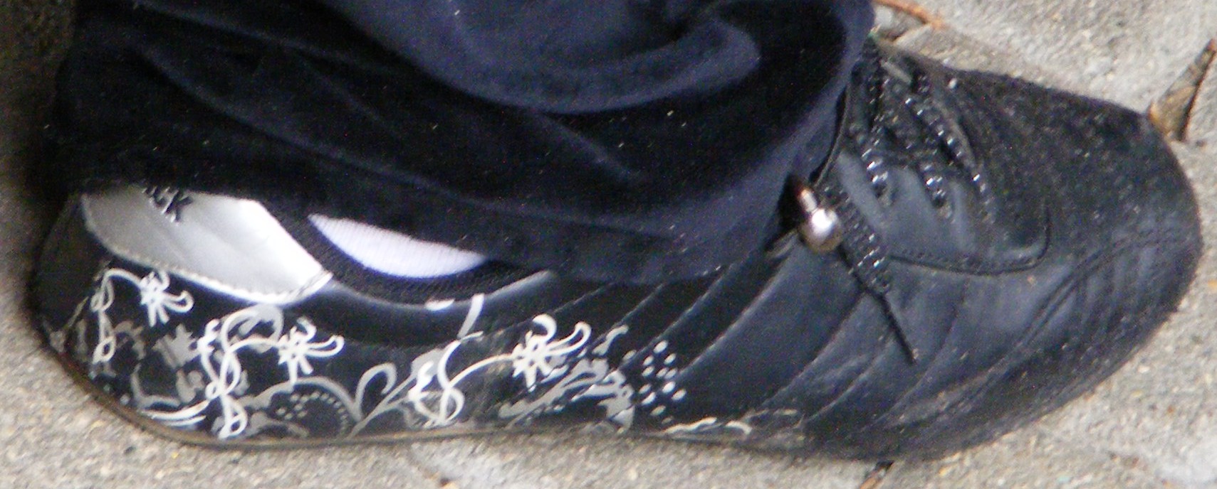 (Den lieben, ach so kritischen Burner1973 würde es Freuen: Es waren ein Paar wirklich schöne schwarze klassische Lederpumps, die ich sogar auch "im Auge" hatte, aber ich wollte das Mädel nicht noch mal "ärgern", es sah so geil aus, mit ihrer Fetzen-Shorts, der schwarzen Strumpfhose und den weißen Söckchen ...