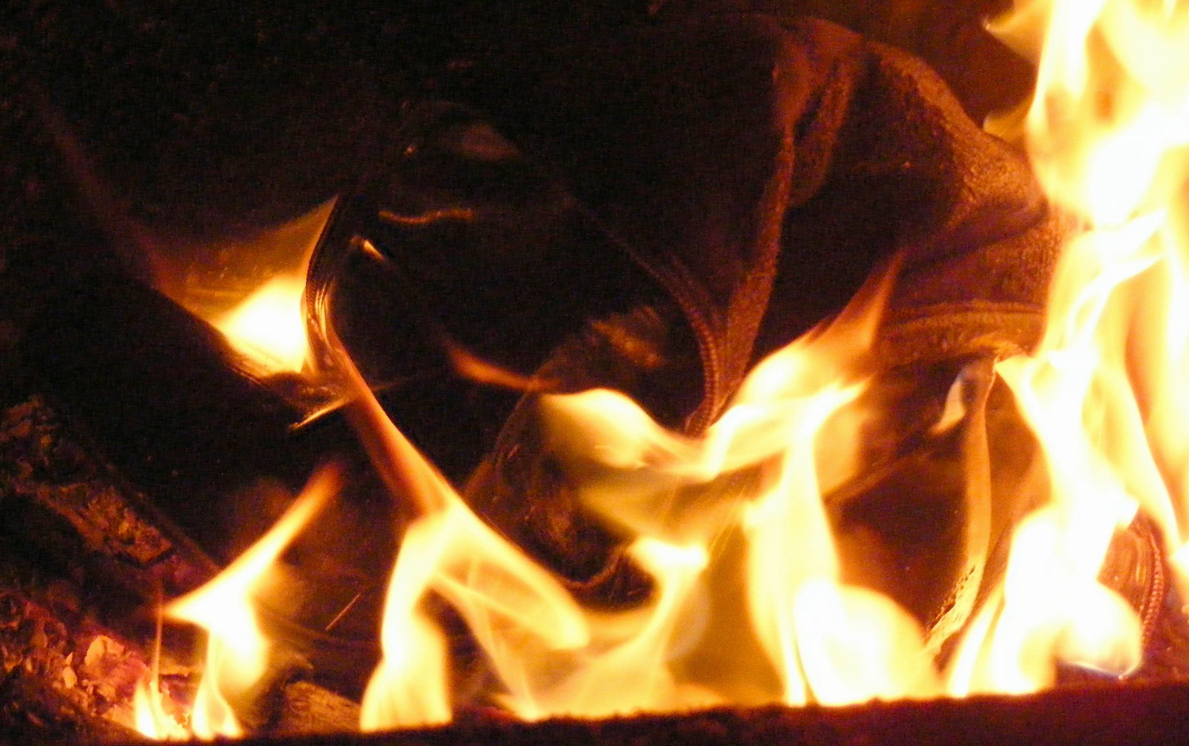 Ich lege den/die noch völlig intakten (ggf. fußwarmen) Schuh/e in den Ofen, beobachte die Bewegungen im Feuer, die unwiderrufliche Zersetzung der geliebten Teile und habe dann ein "greifbares" Ergebnis: So gut wie Nichts mehr!