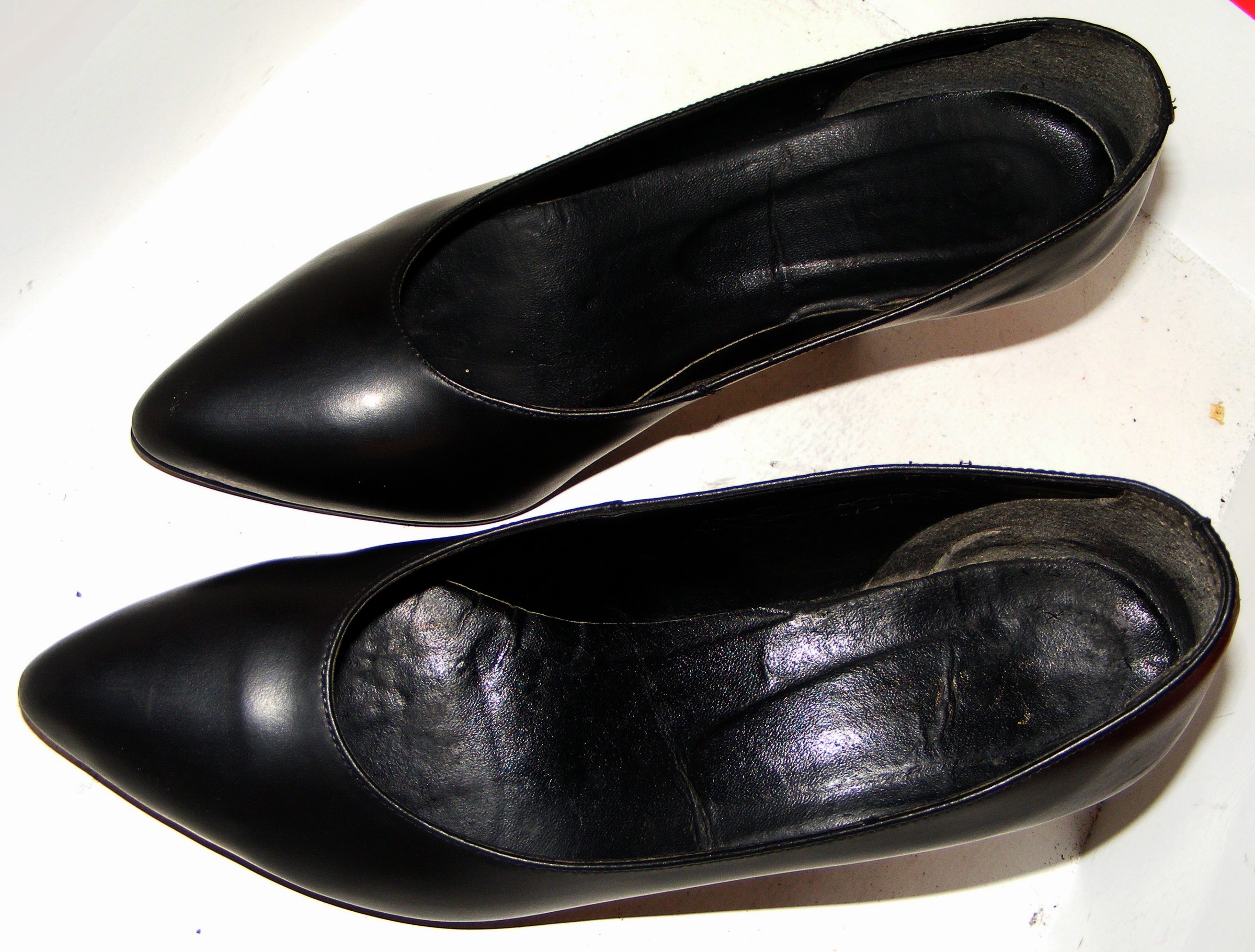 Diese Schnürschuhe hatte ich in Gr 40 neuwertig 1998 im Sperrmüll gefunden. Eine große Freude für mich, hatte ich solche Teile doch schon lange gesucht (mitten in der von mir persönlich erfolgreich ignorierten ekelhaften Plateauschuhzeit) und sie paßten dank ihrer weichen, götterfußgerechten Spitzenform auch wunderbar!