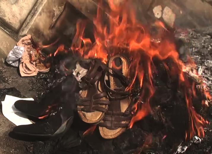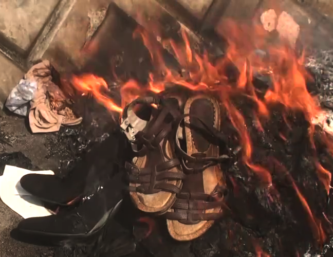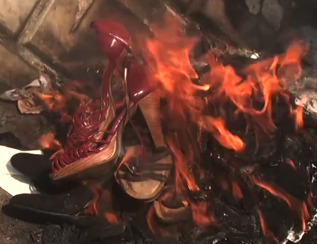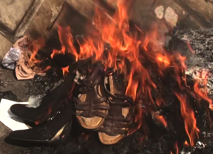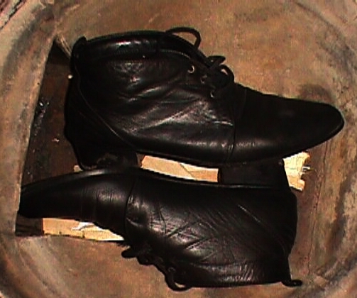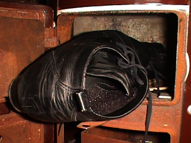 Ich liebe brennende Leder-Sandaletten - auch weil sie so heftig Abfackeln - besonders jedoch im Ofen!