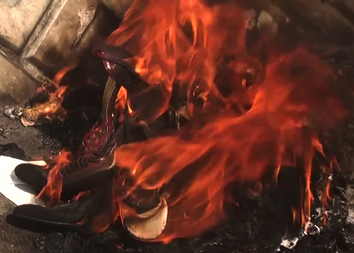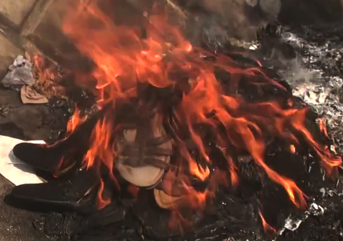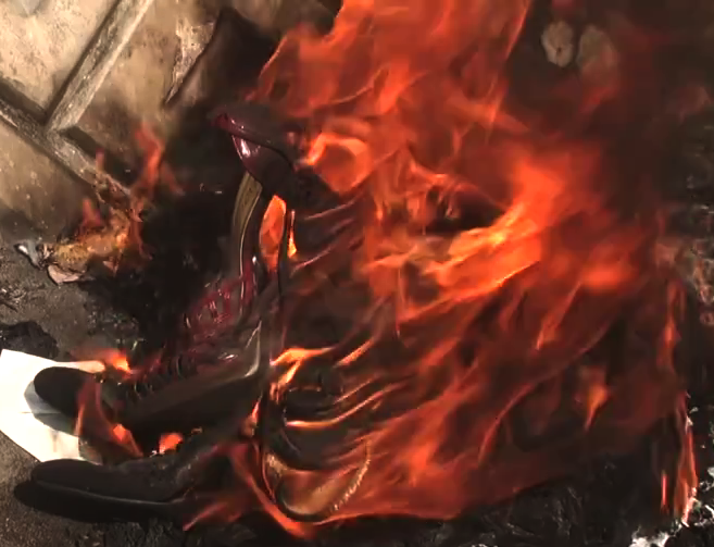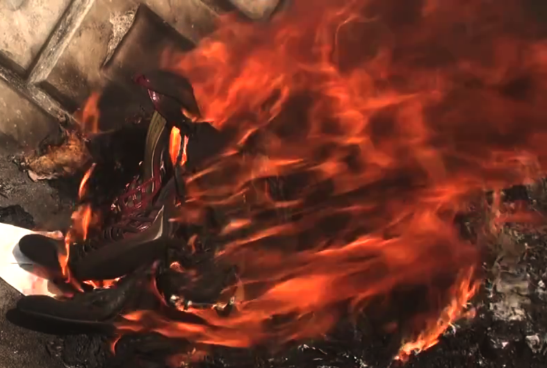 schon geil, wie die airmax im feuer liegen und brennen, so sollten alle airmax modelle ihr ende finden