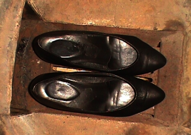 1994, ich wohnte noch "bei Mutti", war ich mit Freundinnen in Calbe "Shoppen". Neben einem Papierkorb fand ich diese Pumps (Hot line, Größe 37) in gutem Zustand; trocken und sauber, vermutlich erst vor einigen Augenblicken "weggeworfen". Da ich zu dieser Zeit häufig genau diese Pumps (von Reno 1990/91) trug, kann ich mich erinnern, daß eine Schulfreundin mich einmal gebeten hatte, eventuelle Teile in Größe 37 für sie Aufzuheben.