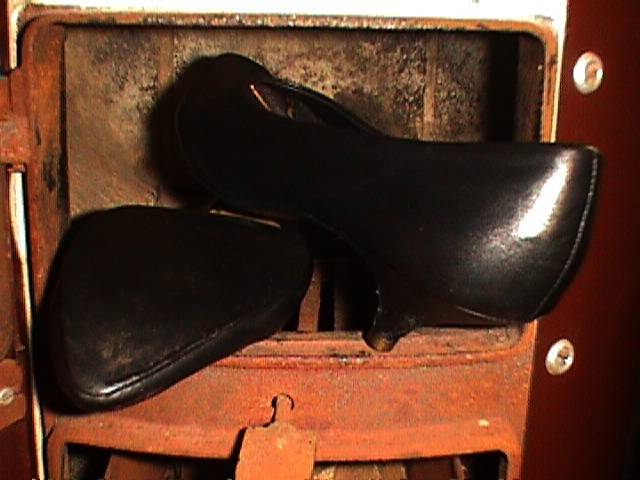 Ich nahm sie also mit nach Hause, doch nach der Schulzeit sahen wir uns nicht wieder. Ich hatte die Pumps dann aufgearbeitet und in einem Karton eingelagert, so entzogen sie sich meiner späteren Verbrennungswut, obwohl sie das "fauchende Wummern" brennender Schuhe aus dem Bad bis in mein Zimmer gehört haben dürften. :twisted: