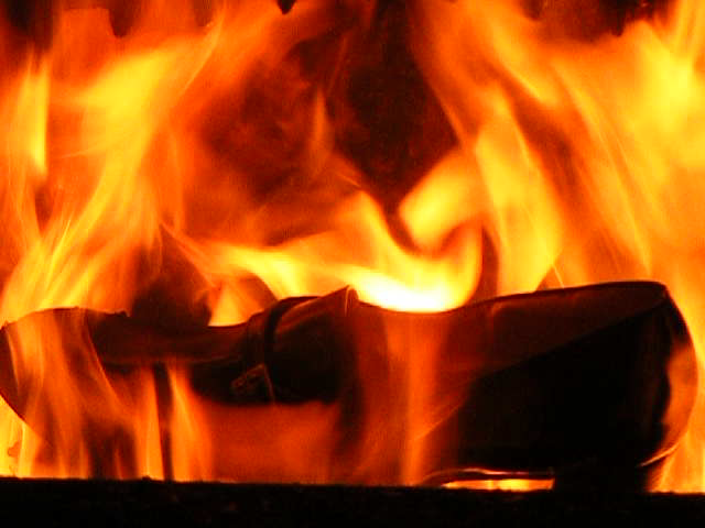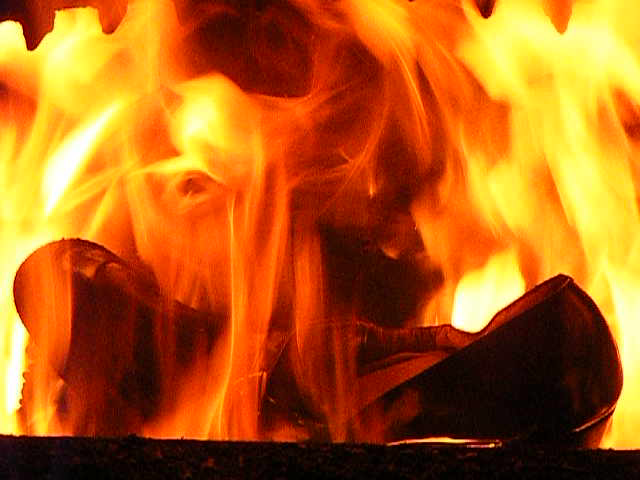 Ich habe mit Holz ein wahnsinniges Höllenfeuer im Heizungsofen entfacht, um dabei insbesondere die Schrumpf-, Streck- und Zerfallsphasen möglichst gut beobachten zu Können.