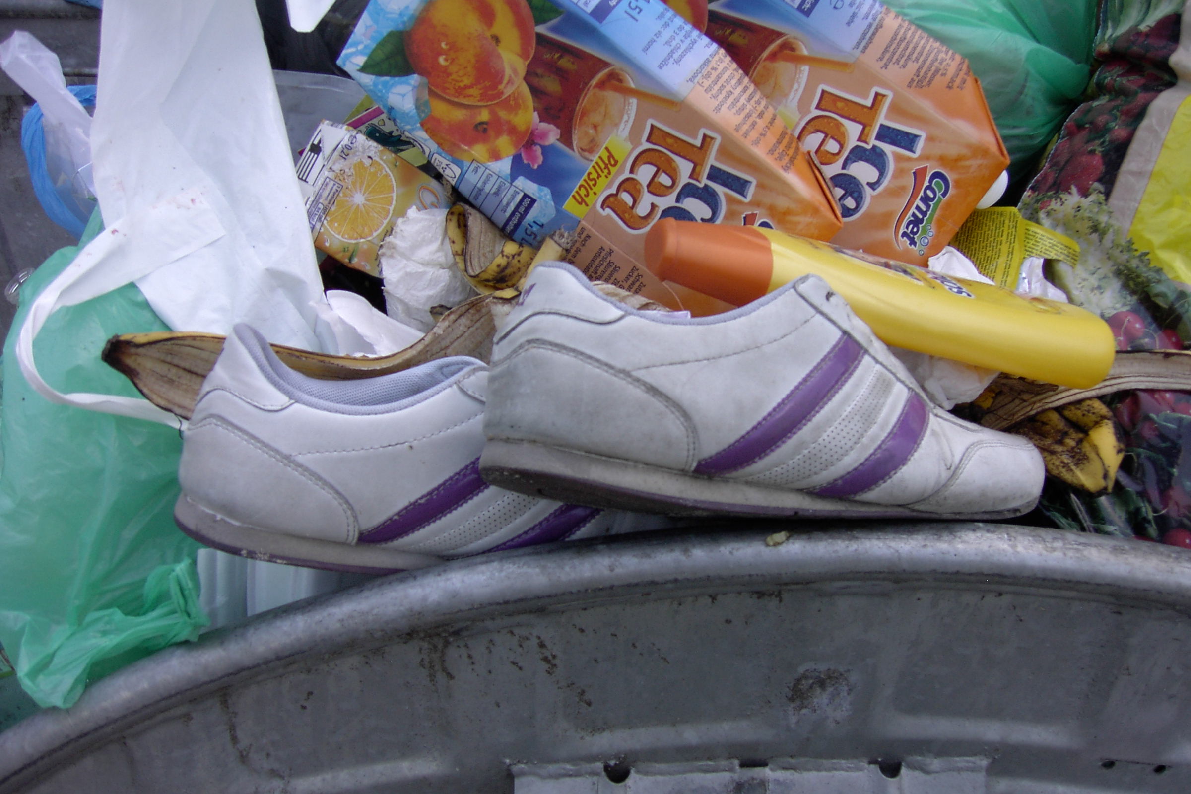Die peinlich verlatschten Buffalos waren auch nichts mehr für die Altkleidersammlung und lagen ebenfalls zu recht im Restmüll.