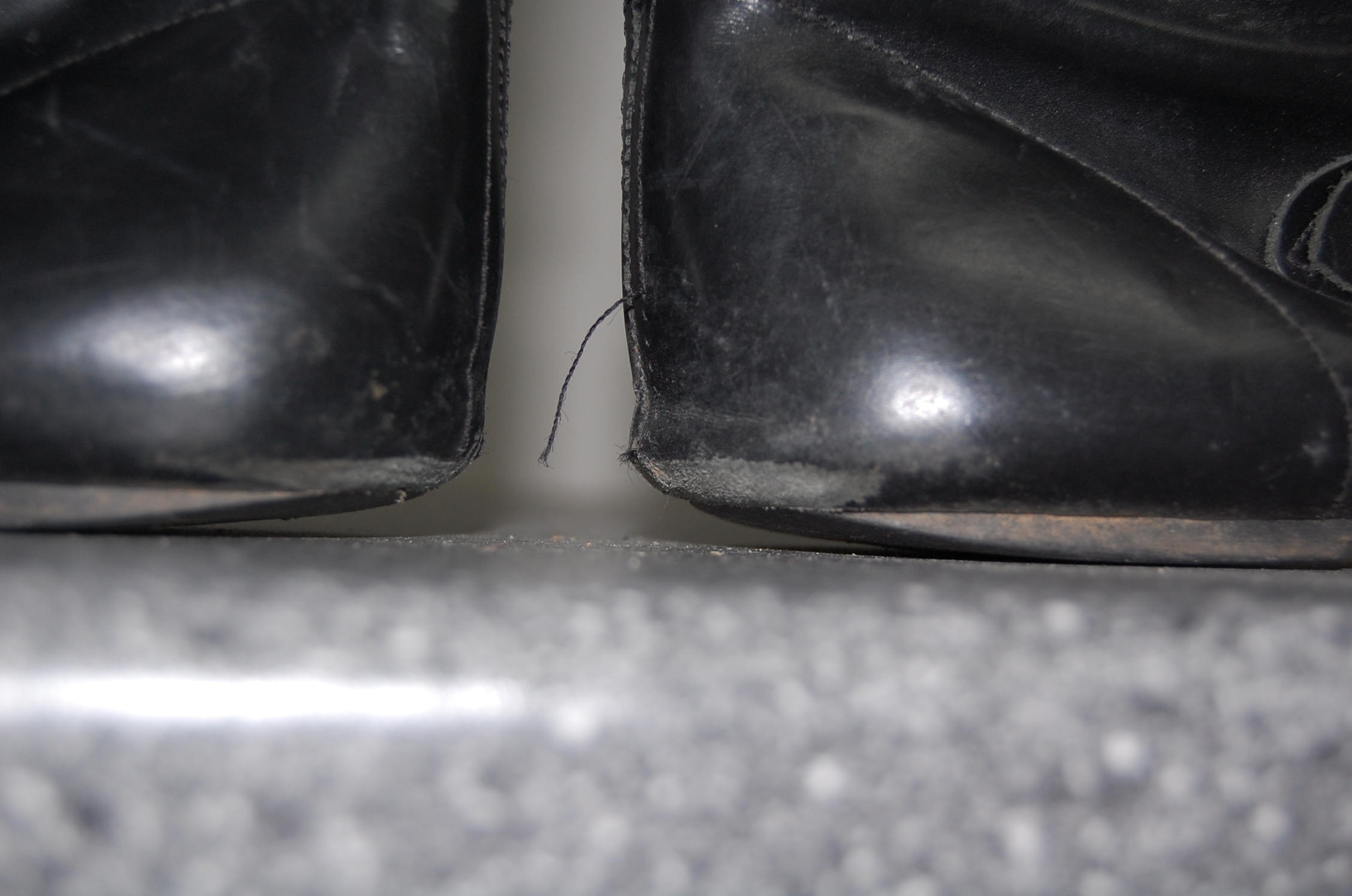 Die Spitzen sind kaputt und die Sohlen sind gebrochen. Die Nähte reißen auf und die Absätze sind verschwunden. Auch wenn es sich um Kultschuhe handelt, aber für dieses Paar gibt es keine Rettung mehr. Das Wildledermodell wird repariert und dann habe ich damit immer noch ein kultiges Paar im Bestand.