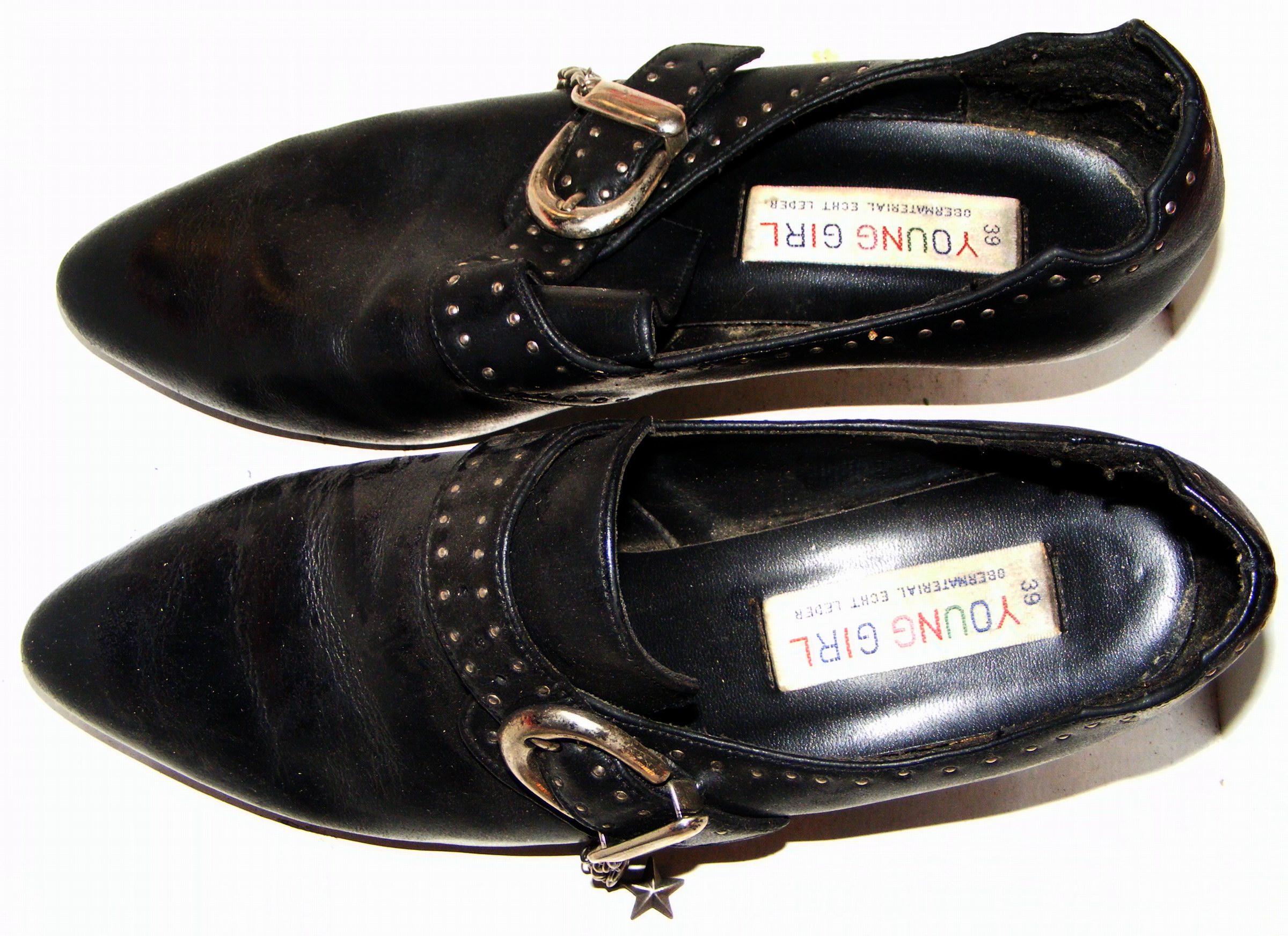 Dann trug ich sie drei Jahre lang, bis sie von meiner WG-Mitbewohnerin "Ausgeliehen" wurden, die sie dann im Jahr 2000 einige Male, ebenfalls mit "Götterfüßchen" in Größe 39 getragen hatte. Nun sind sie durch Zufall wieder bei mir. :)
