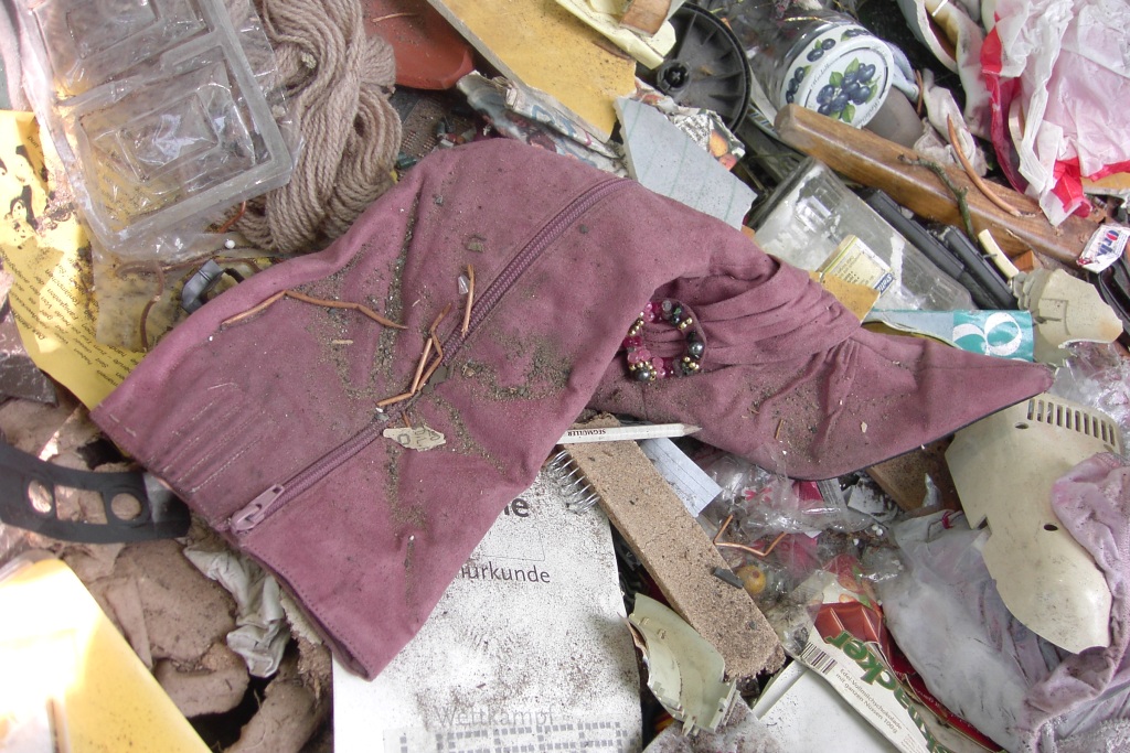 Hier lagen nun Jessicas Stiefel und warteten nun übers Wochenende auf ihre allerletzte sehr kurze Fahrt hoch auf die Müllkippe.