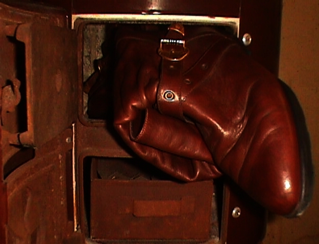 An einem späteren Abend heizte ich den Badeofen an und nahm einen der Reitstiefel aus dem Kohleneimer, um damit "Nachzulegen". Als ich ihn zusammenwickelte, sah ich, daß er Größe 40/7 hatte und probierte das Paar sofort an. Na ja, die Stiefel waren, weil sie vorher nur mit Größe 38 Getragen und noch nie Eingekremt wurden, an den Füßen ein Wenig eng, die Schäfte aber waren angenehm reichlich weit! Ich fütterte den Badeofen also nun mit anderen "Brennschuhen" und knetete in der Wärme vor der offenen Feuertür die Spitzen "weich", was natürlich im Zusammenhang mit den im Ofen fackelnden Pumps und Ballerinas ein ganz besonders genußvolles Erlebnis