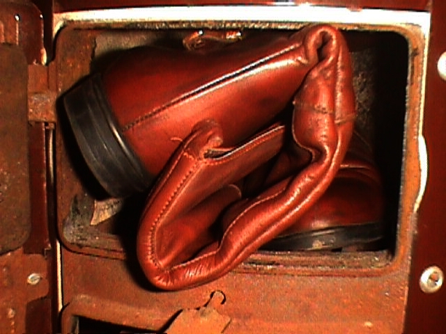Da sie eigentlich Schuhgröße 38 hat, habe ich nicht weiter Nachgesehen und meine Kollegin hat die Stiefel gleich selbst in den Kohleneimer neben dem Badeofen geworfen, wo sie einige Tage unbeachtet verbrachten, weil ich erst noch andere Sachen verheizte.