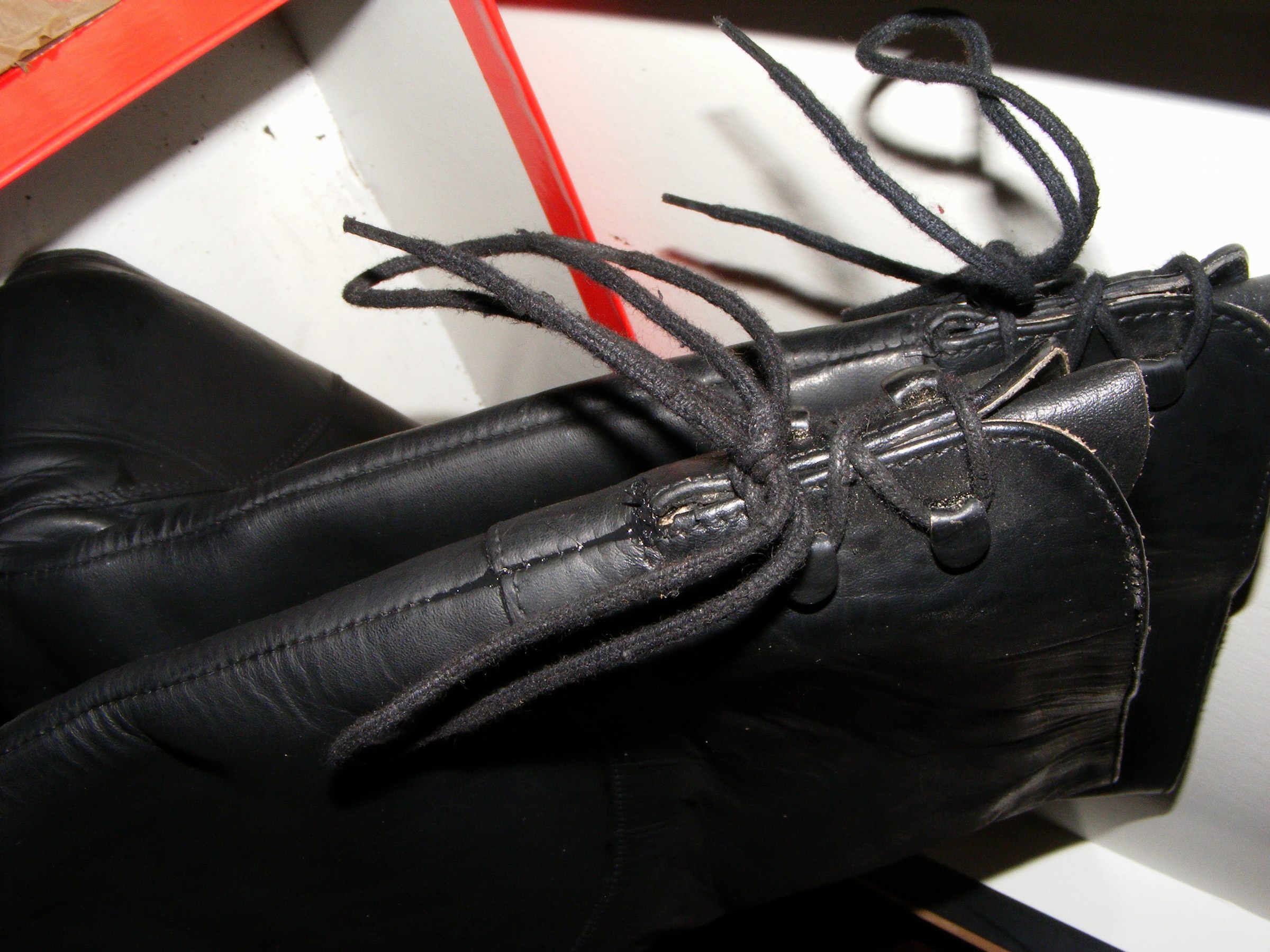 Also, rein ins Auto mit dem ganzen Zeug und ab damit nach Hause. Trotz des Zustandes der geilen Beute füllte sich der Wagen mit einem Geruchsgemisch aus aufgewirbeltem Hausstaub und dem typischen Lederduft, gerade dieser alten Schuhe. Dann das Ausräumen. Mein Mann hielt einen Sack auf, ich packte um. Bei einem Paar schwarzer Pumps hielt ich inne. Ich faßte sie mit beiden Händen an den Hacken und betrachtete die Spitzen - was für schöne Füße die Vorbesitzerin hatte! Nein - die Teile sind es wert, aufgearbeitet zu werden. Das Selbe galt für die wundervollen Stiefel.