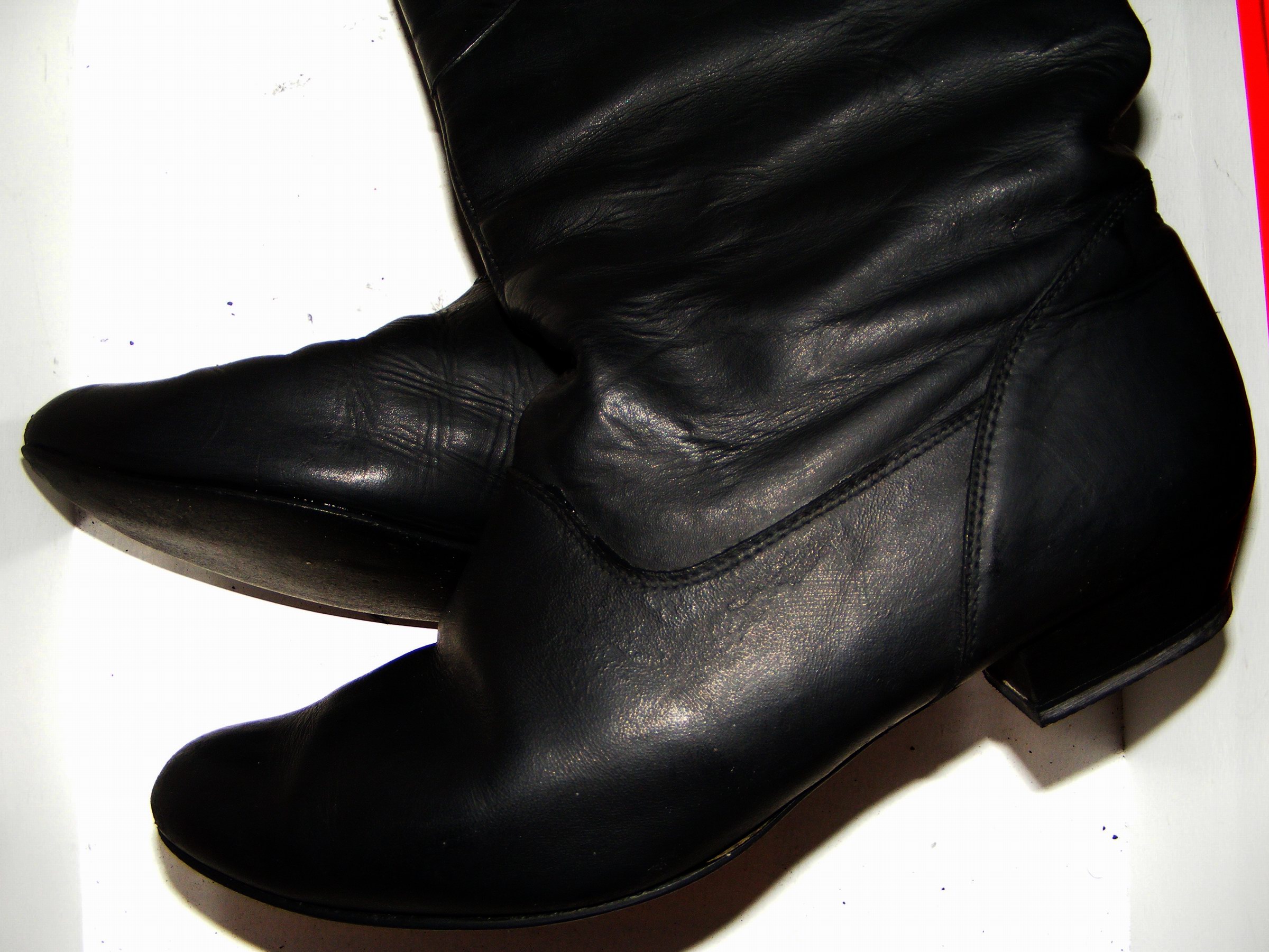Ist aber ein Glücksfall, sonst hätte sich vermutlich das Fußrelief im "Haufen" nicht so lange erhalten können. Die Füße waren so göttlich und breit, es muß auch ein Wahnsinns-Zehendekolletée gegeben haben (kannst gern Kopfkino kriegen!). Meine "Nachforschungen" haben ergeben, daß die Pumps aus der Zeit von 1989-92 stammen müssen (ich hatte 1996 schon ein gleiches Paar bereits Gebrauchte), die Stiefel sind von vor 1990 (wegen der Werksschließung in Burg).