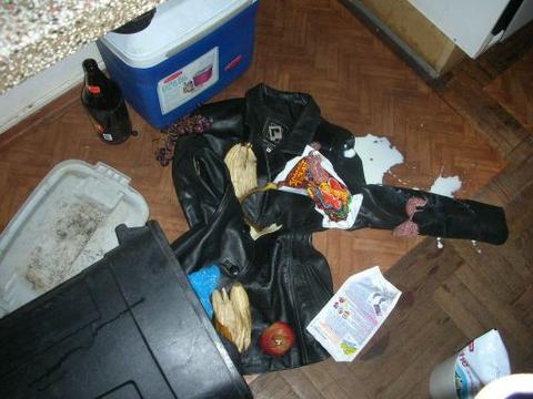 da hätte der Jan66 sicher seine Freude dran: Selbst ein Ledermantel muss in einen total siffigen Küchenmülleimer. Sehr geile Bilder.