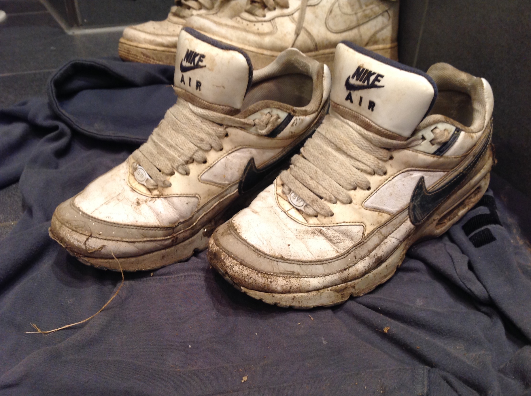 ...die schönen weissen Nike Airmax BW Gr 40 wurden eines Tages mit in den Stall genommen, und seitdem zu Stallschuhen degradiert. Geputzt wird da nix mehr dran, da sie als Wechselschuhe auch barfuss und mit dreckigen Socken aus den stiefeln genutzt werden sind sie mittlerweile auch innen ziemlich versaut. Der Besitzerin alles egal... übel nach Pferdemist stinken die auch mittlerweile... für meinen Geschmack genau die richtige natürliche Vernichtung für so Nikes, was meint ihr?