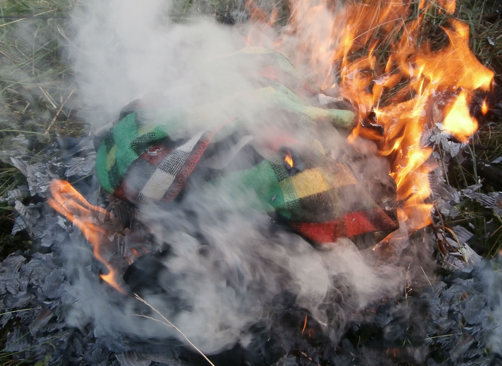 Die Decken sind beide noch nass und brennen so nicht. Haben halt draussen gelegen.