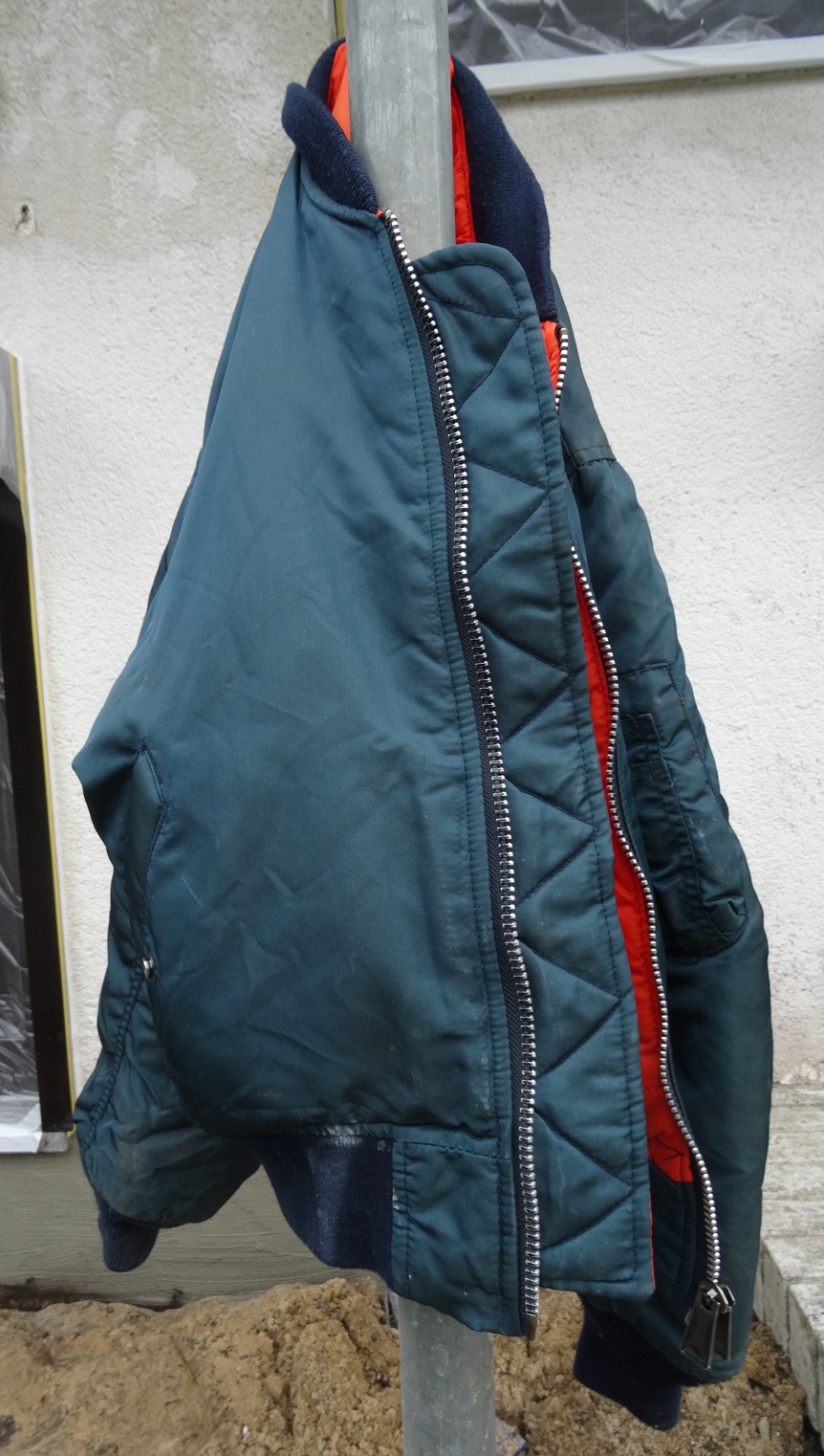 Garage ist saumässig dreckig, die Bomberjacke muss den dreck aufnehmen