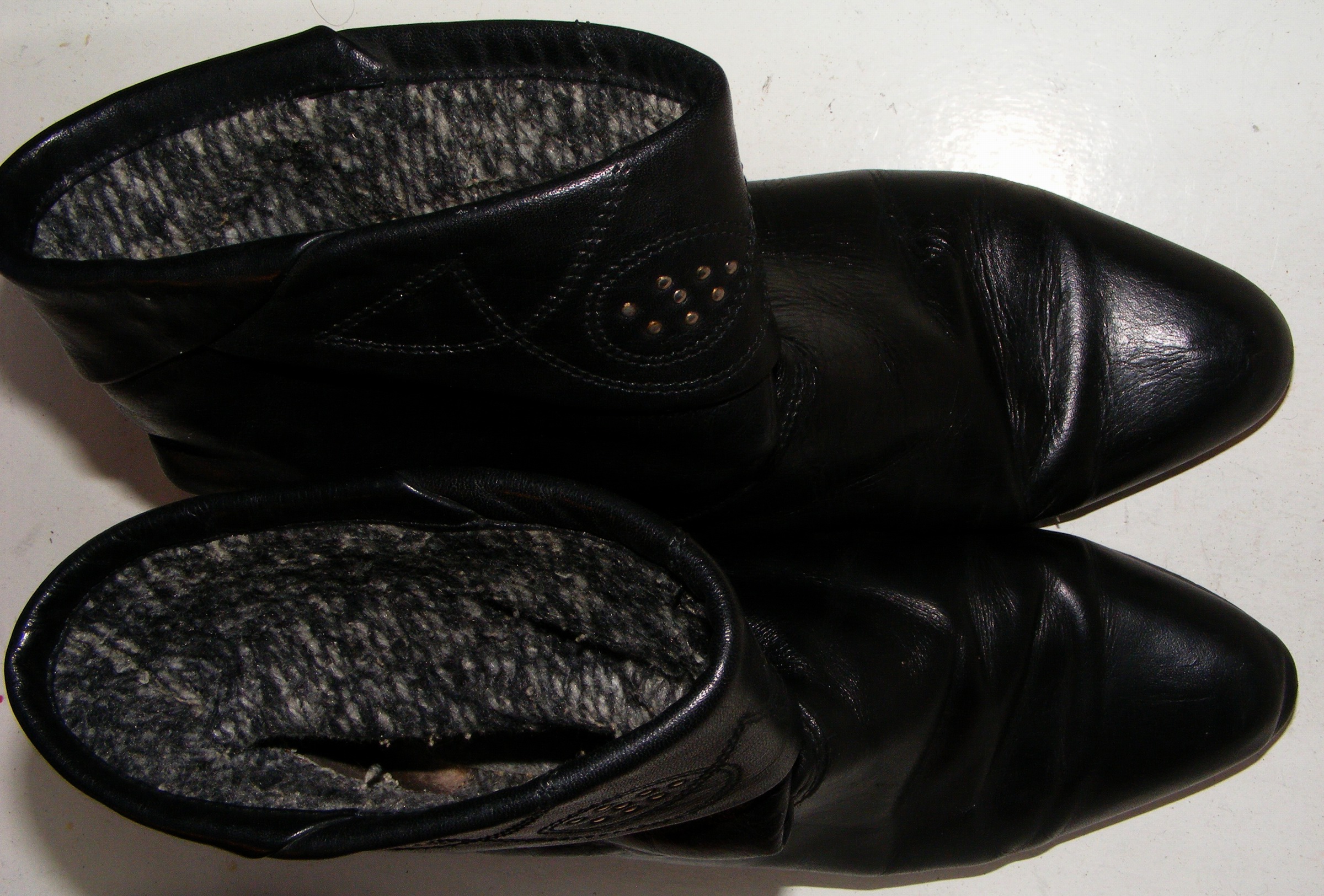 Diese Stiefel sind eine reichliche 38, eher 39, ich konnte sie also noch den folgenden Winter Tragen, doch dann waren sie wirklich zu Klein. Dies geschah aber bereits, nach dem ausdrücklichen Verbot an meine Mutti, "richtige" Damenschuhe von mir zu Verbrennen. Und, sie hat sich daran gehalten! Ich weiß nicht mehr, wann und ob ich es selbst tat - die Stiefel kamen in einen Karton und dann auf den Boden im Elternhaus. Das aber wiederum vor dem Tag, als ich mein Zimmer aufräumte und erstmalig alles Kaputte und zu Kleine selbst im Badeofen verbrannte - dabei wären sie dann mit Sicherheit auch Verschwunden!