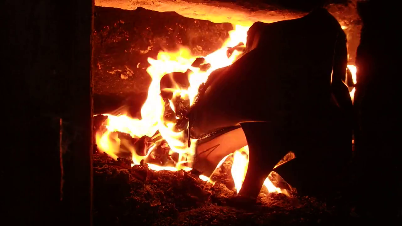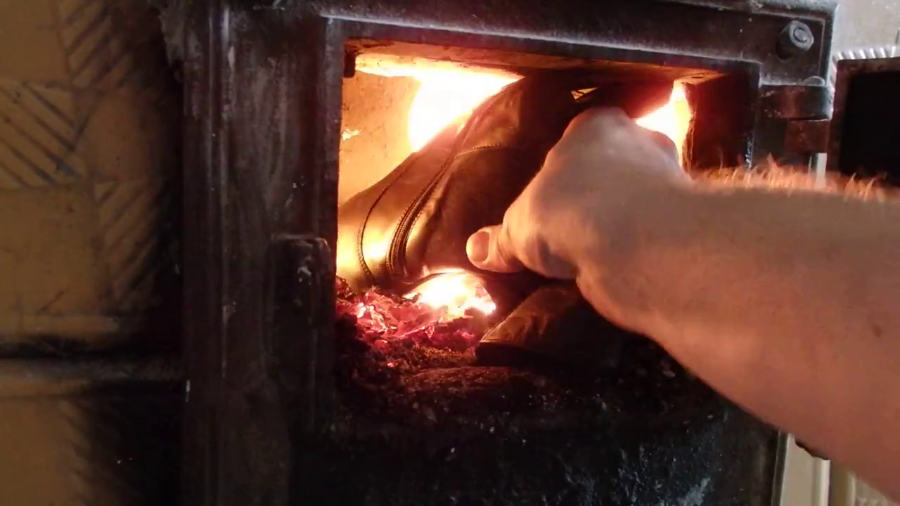 Ich muß Zugeben, beim Anblick dieser schönen Stiefel in der "Brennholzkiste" (Vorfreude!) und im Kaminfeuer ging mir käftig Einer ab - das sind genau diese Teile, bei denen ich mich besonders freue, sie möglichst passend im Müll zu Finden, um sie vorher noch mal zu "Mißbrauchen" und am Fuß vor den Ofen zu Bringen, mit ihnen hockend oder kniend eine "Anheizzeremonie" Durchzuführen und dann selbst heftigst genußvoll den Flammen zum Verzehr zu Überantworten.