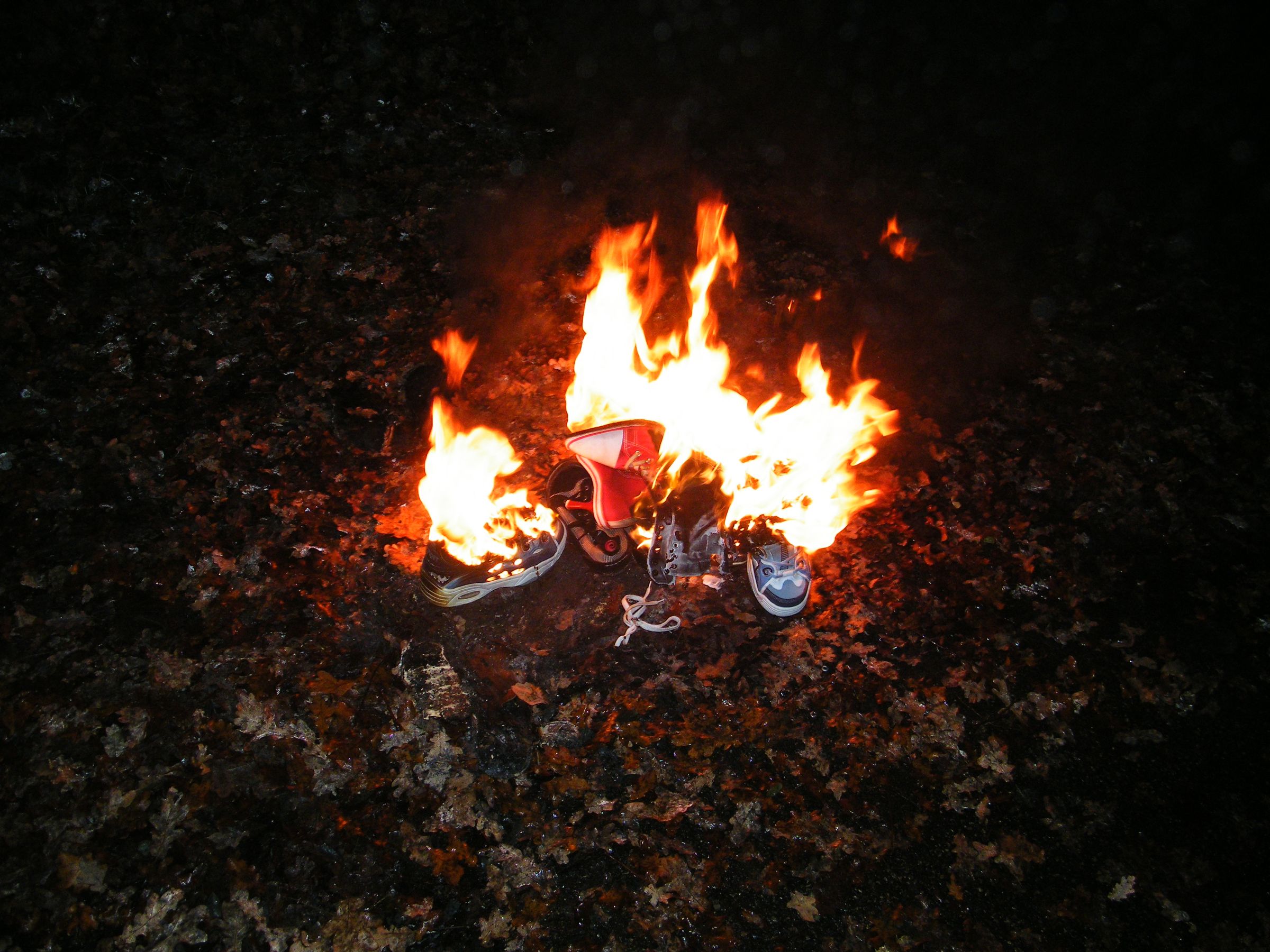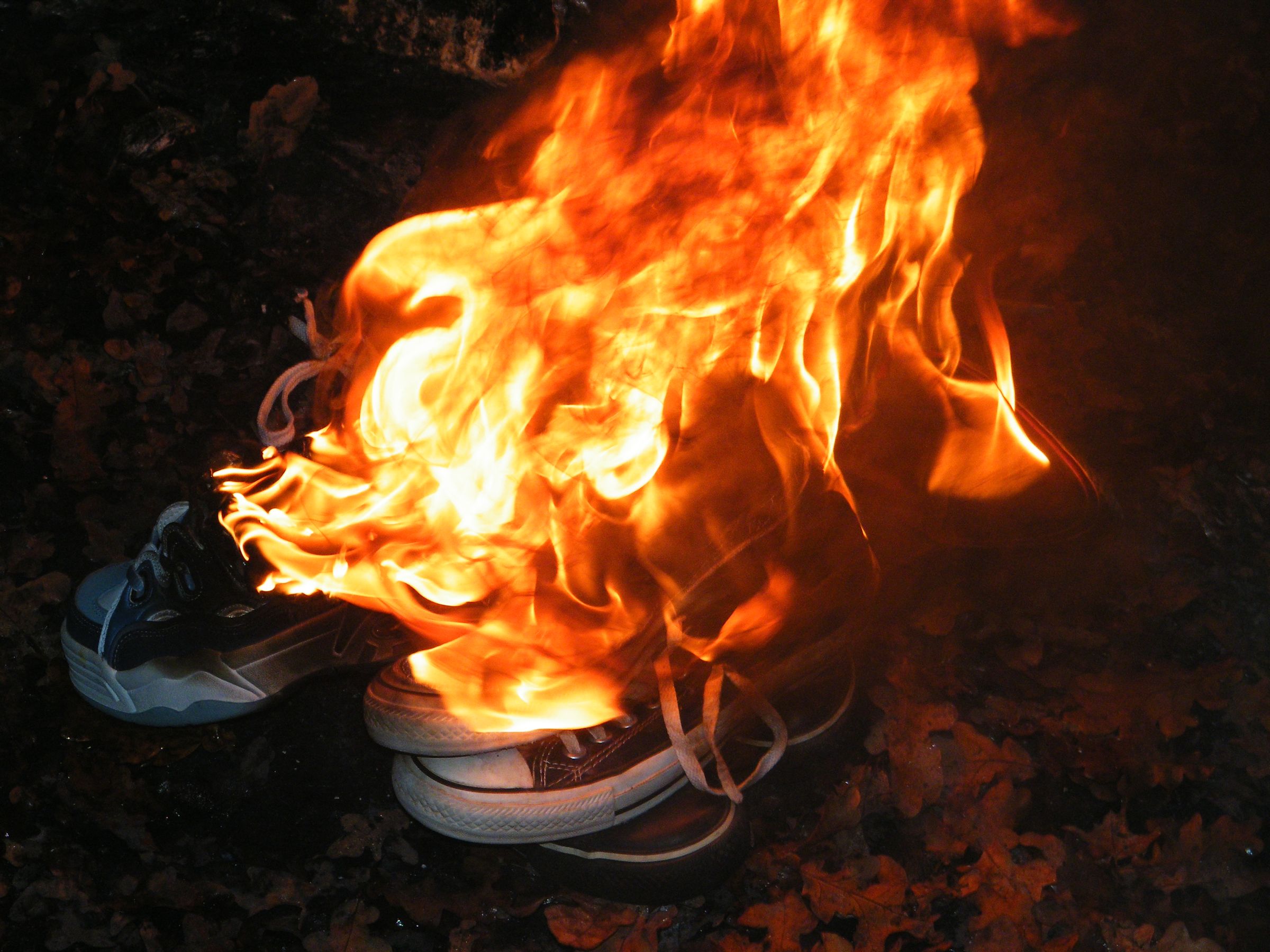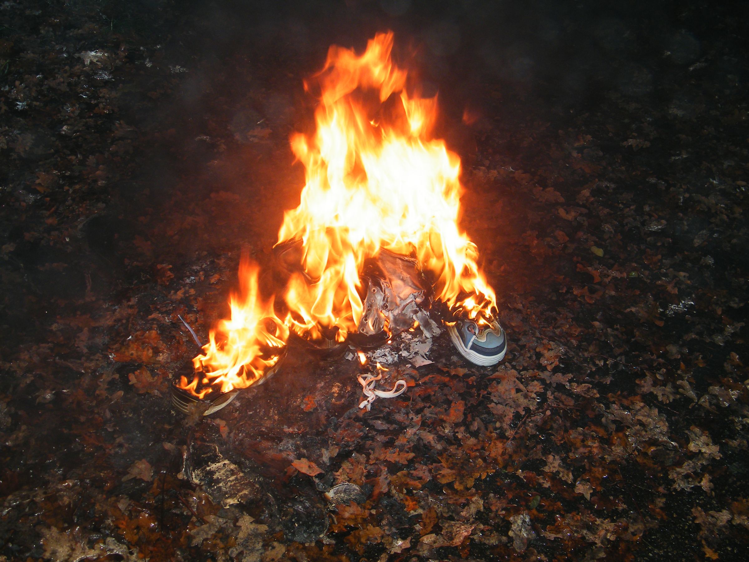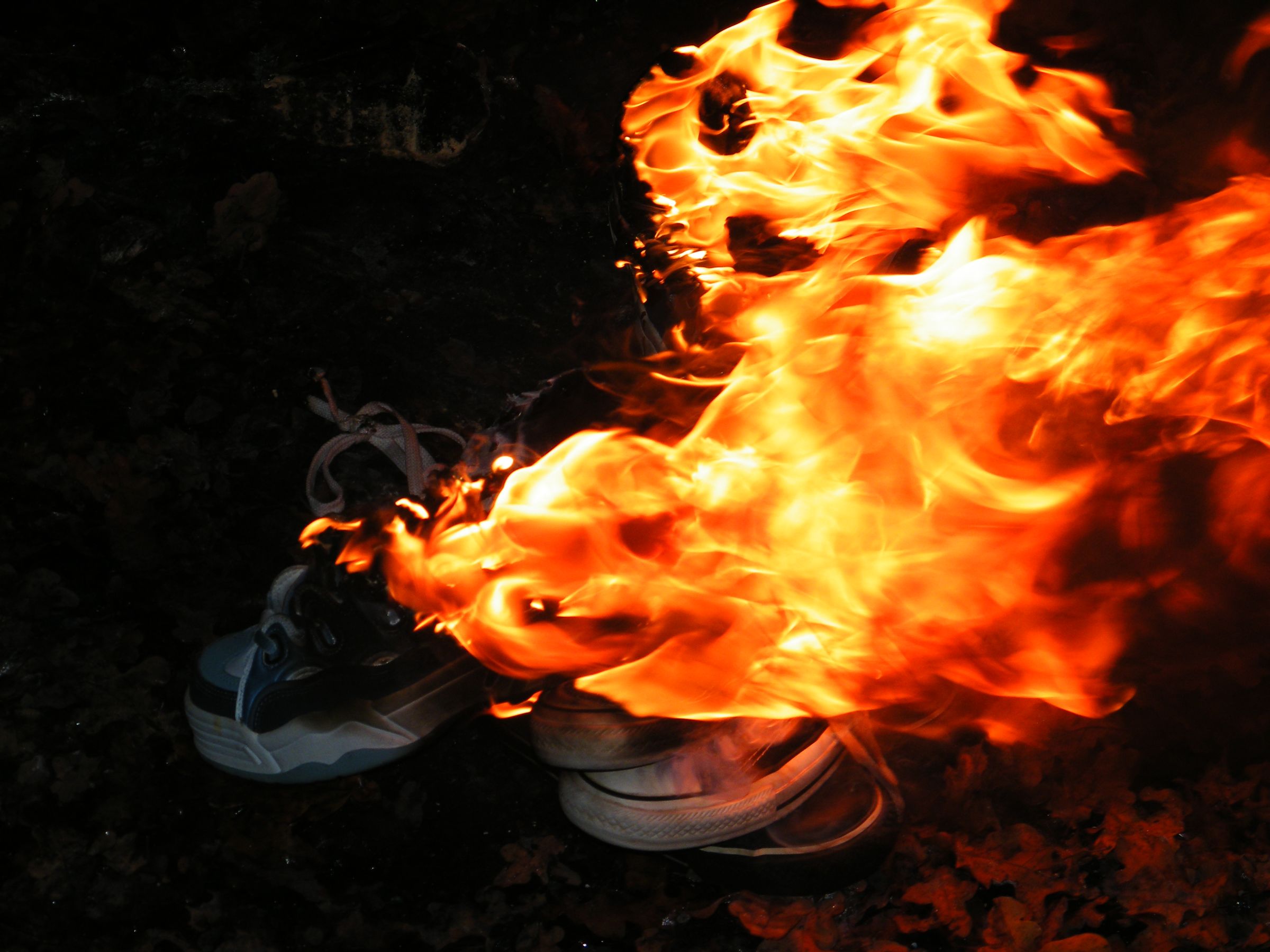 Daraus gelernt, fand' der nächste Videodreh - und alle, die noch folgen sollten - im heimischen Badezimmer aufgrund der vorhandenen (Rauch-)Abzugsanlage (fragt nicht, wofür die da ist!) statt. Ich frage mich, warum ich da nicht gleich drauf gekommen bin. Aber ich sollte lernen, dass Adidas' Superstars zum einen ungern brennen wollen und zum anderen, wenn sie denn mal aus eigener Kraft Feuer gefangen haben, fürchterliche Gerüche absondern. Inzwischen verwendet man zwar Brandbeschleuniger und andere Utensilien, weil man daraus gelernt hat, doch muss ich zugeben: Die Superstars waren nicht die schlimmsten Fußbekleidungsstücke in dieser Hinsicht!