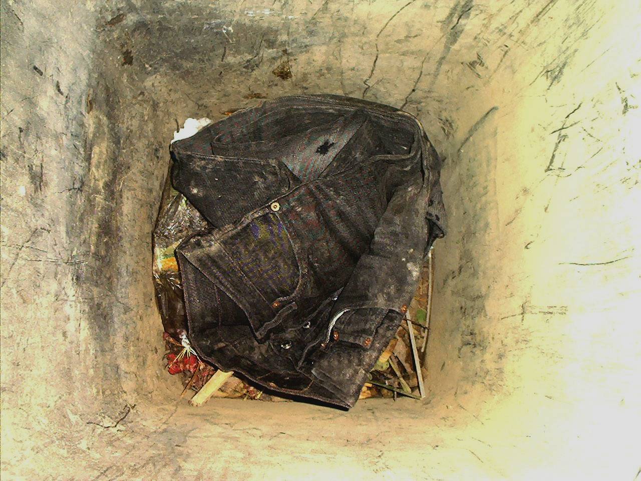 weiterer Fund im Müll, die ersten beiden Bilder zeigen die Jeans noch im Abfall liegend, die 3 weiteren zeigen die Levis nach der Befreiung aus der Mülltonne!