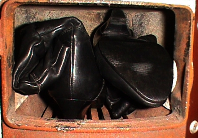 Ich war auch einige Male Zeuge einer Schuhverbrennung, doch die Täterin (Mutter meines Freundes) trug noch die schönen Stiefel, als sie andere Altschuhe und Arbeitsschuhe ihres Mannes in den Küchenherd steckte. Aber die Gewissheit, dass diese schönen Stiefel ebenfalls in dieser Brennkammer landen würden, hat mich als kleiner Junge schon ordentlich beschäftigt.